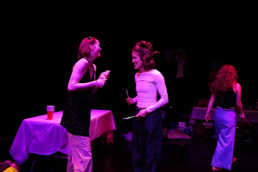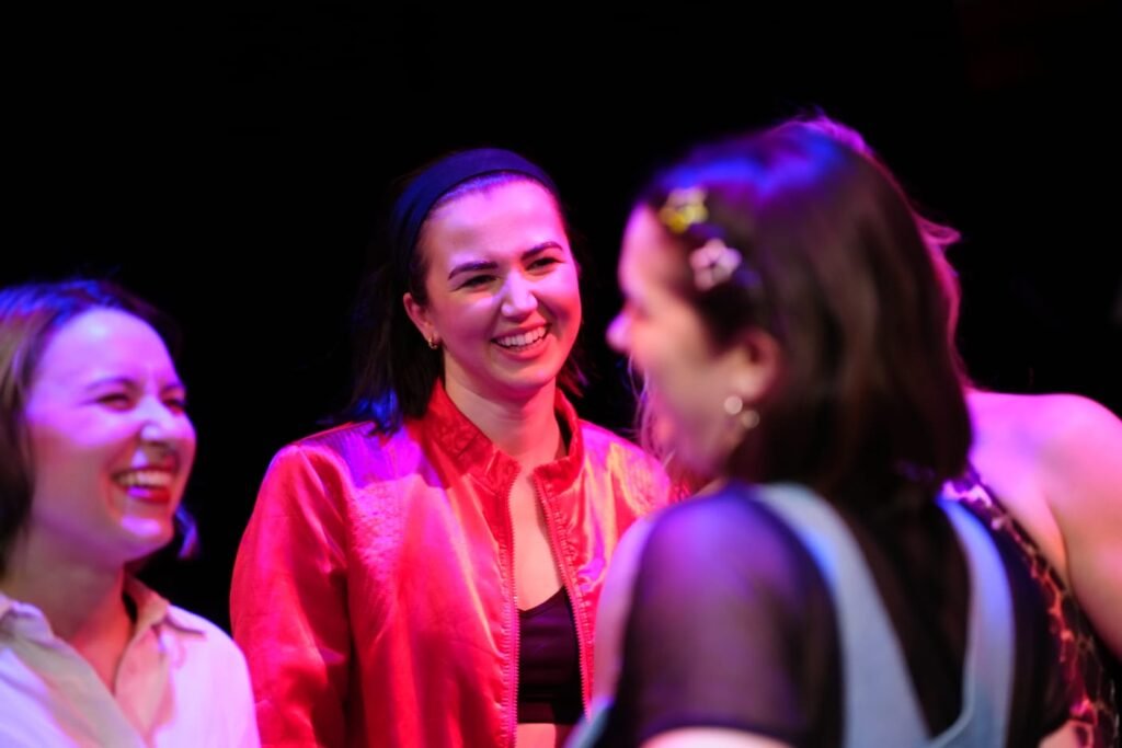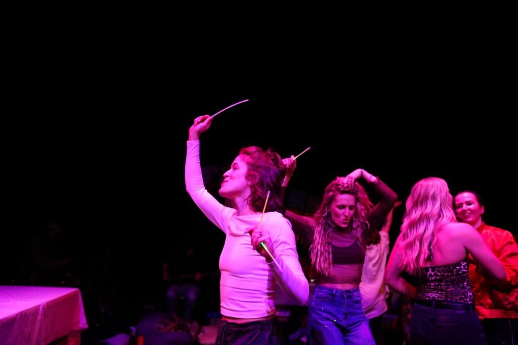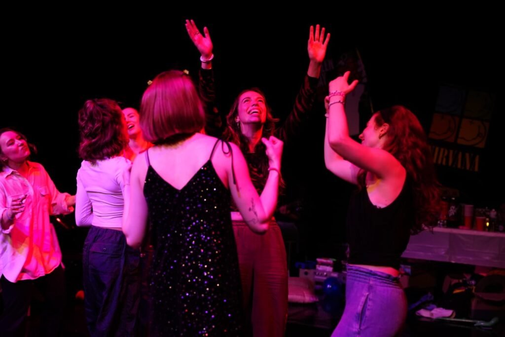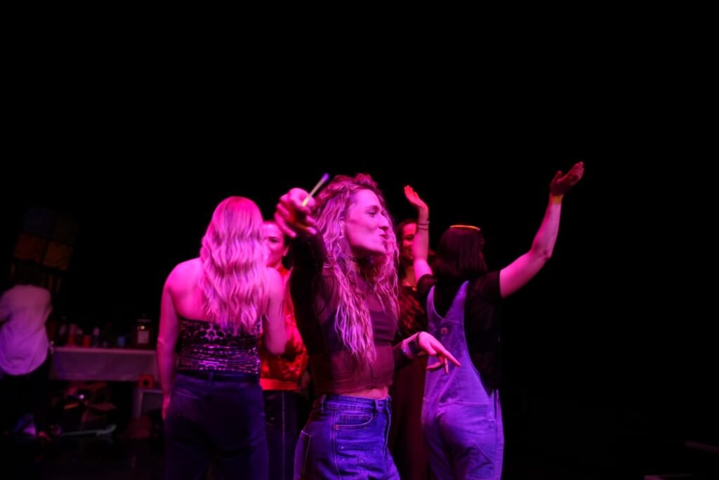 An unusual start to the show sees the artistic director/choreographer hold up hand-written placards which let you know that we’re in a dorm with 9 girls who have one final party night together before their lives change. It’s a low-key start and the placard theme continues although it moves to two music stands at the rear of the performance space. The start and end of the production could be tighter and punchier. Not sure that this was going to be for me…..