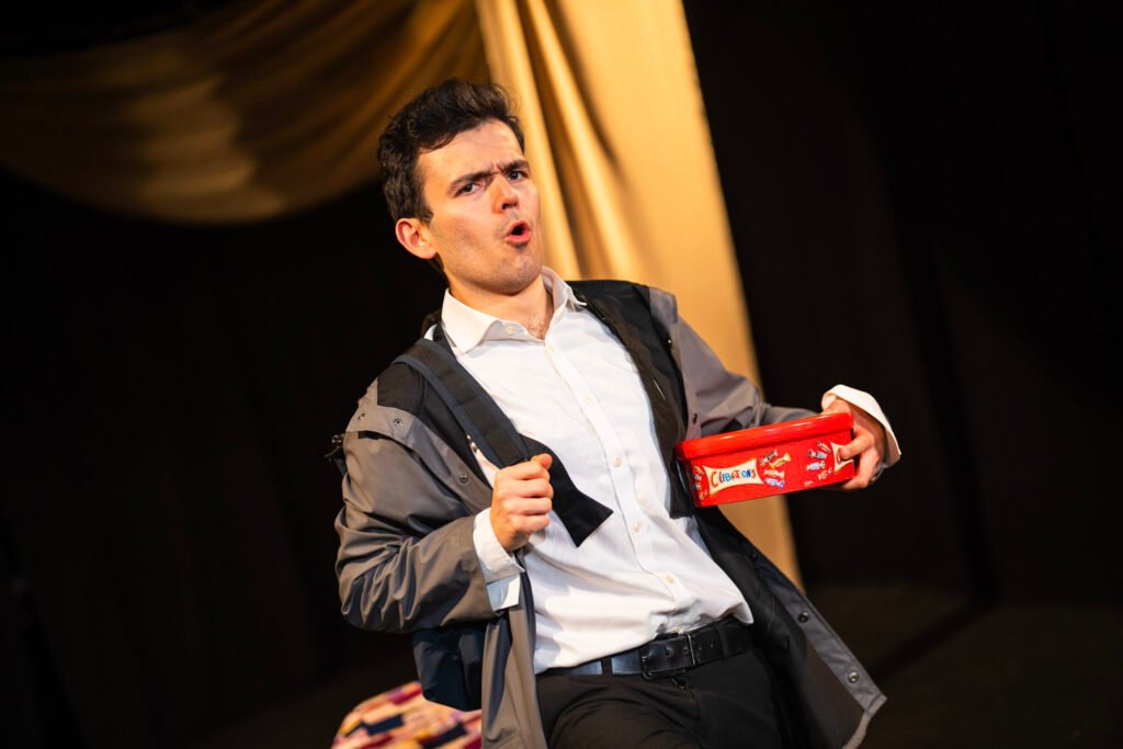 Aaron, an out-of-work entertainer, has nicked his dad’s ashes and hidden them in a tub of chocolates. Now he’s on his way to Cornwall with no money, a half-baked plan, and the police in hot pursuit. Catch him while you can!