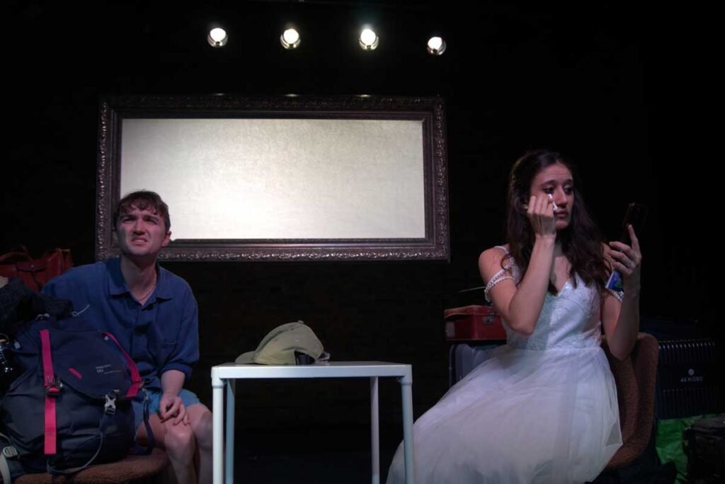 It’s an interesting piece of theatre. Why is the woman in a wedding dress? What is the traveller doing? Their early stilted conversations slowly make way for a little more trust and flow in their conversation. The script is engaging and I did invest in their stories.