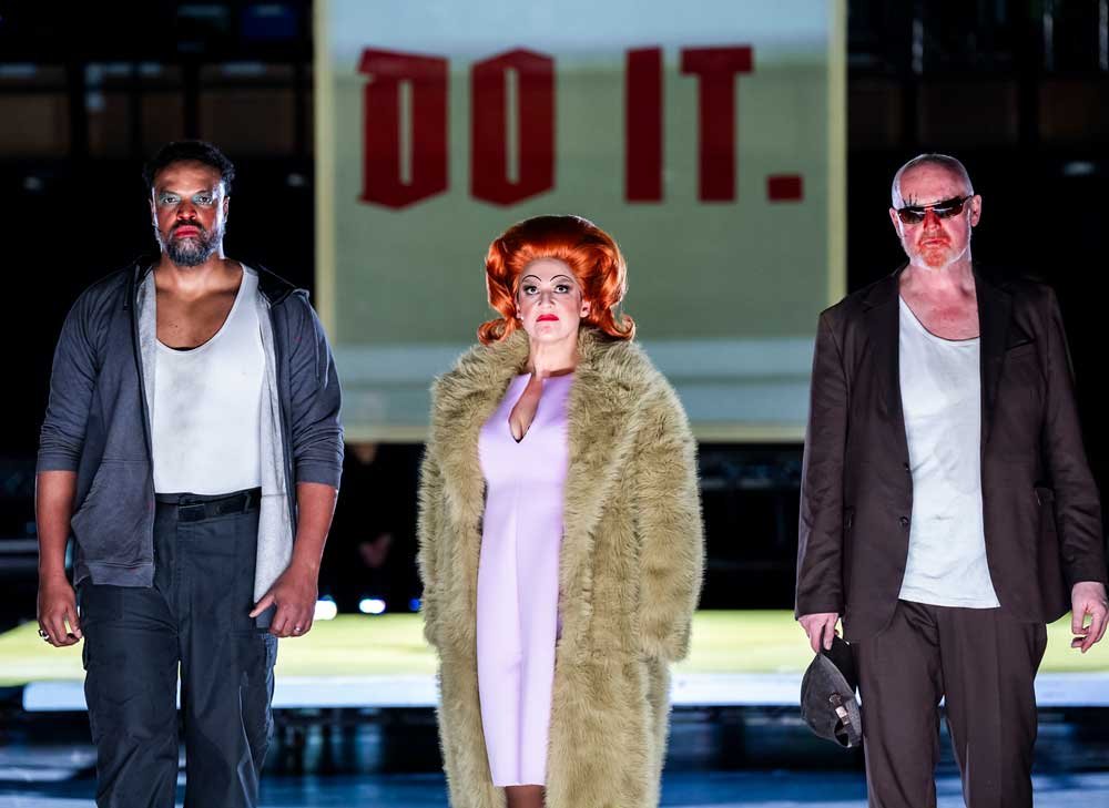 Weill’s score is gloriously played under the baton of German conductor André de Ridder. Rosie Aldridge as Leokadja, Danielle de Niese as Jenny and especially, Simon O’Neill as Jimmy, perform superbly both in song and speech, and with clarity, and power as they wrap their tonsils around Weill’s mammoth score. To see this production was illuminating. The diversity of Weill’s music amazes. There are chorales, marches, laments, alongside Weill’s recognisable cabaret style, jazz scoring -and who doesn’t know Jenny’s ‘Alabama Song,’ the apotheosis of the show
