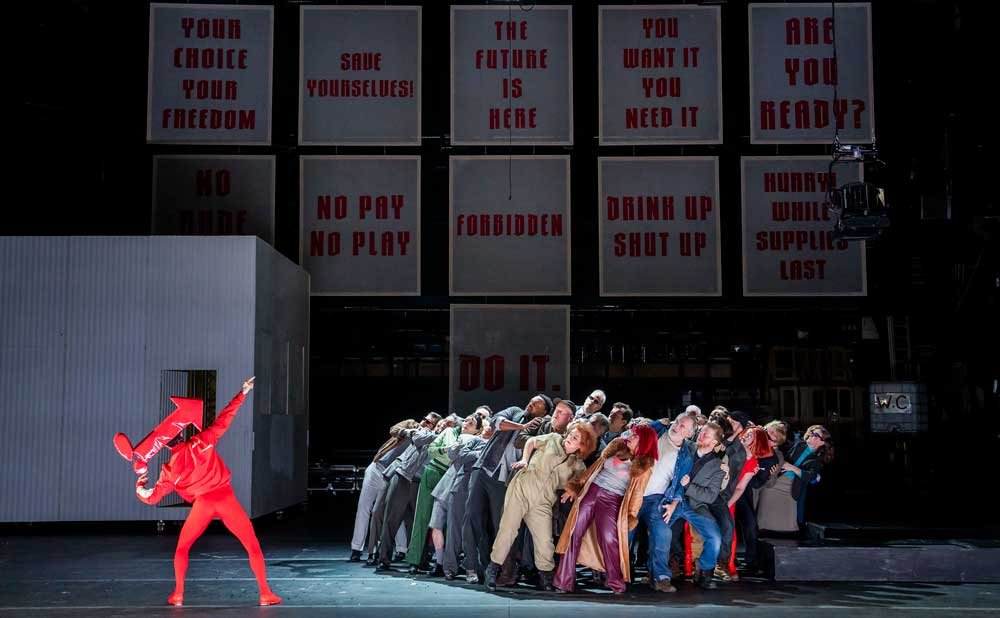 The show ends with the ensemble challenging the audience: “The freedom money gives you, is no freedom.” The city of Mahagonny, which is based on the premise “Get kicked in the face if you want, but I’d rather stand and kick” finally falls and destroys itself to rapturous applause from the first night audience. This was a thrilling evening of opera, with almost too much musically and in its production to digest at one sitting, but an evening which will remain with all who saw it. Brilliant.