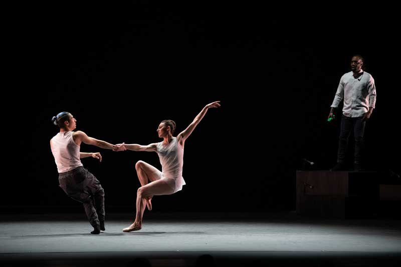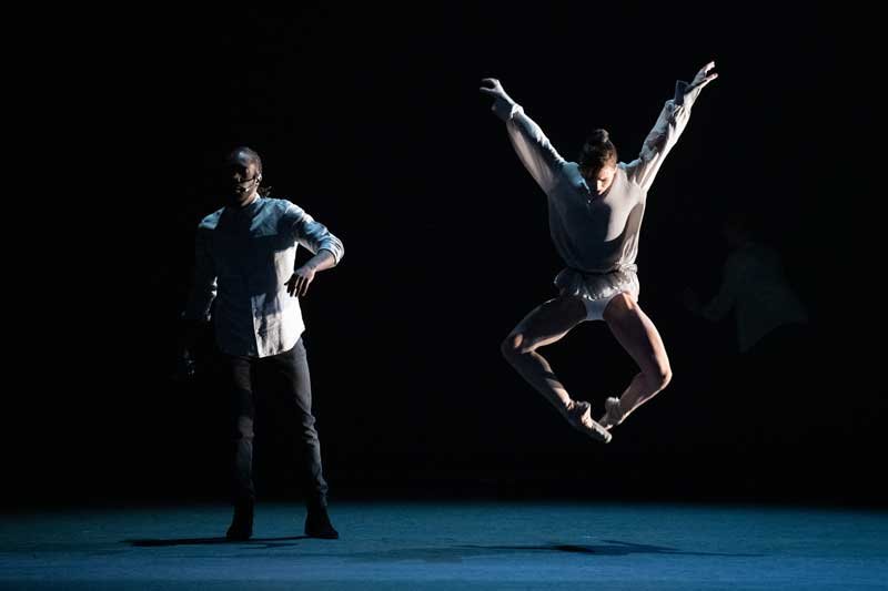 Next came ‘Swift Arrow’ a short duet for Peck and Roman Mejia (who worked almost as hard as Peck and appeared in three of the show’s ballets), choreographed by Alonzo King to a live piano score by jazz pianist and composer Jason Moran. Its intimacy displays the deep relationship of the dancers to each other and to dance itself.